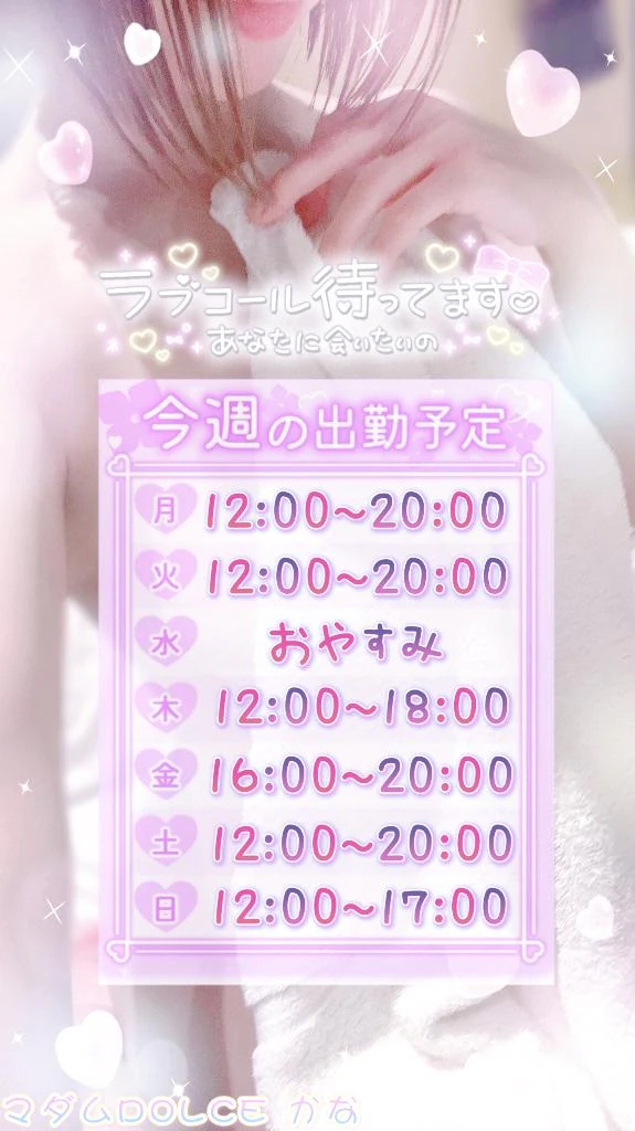 直近の出勤予定は画像通りとなりますので、ご予約とお誘いをお待ちしております(♡ᴗ͈ˬᴗ͈)