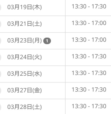 明日は13:30くらいから