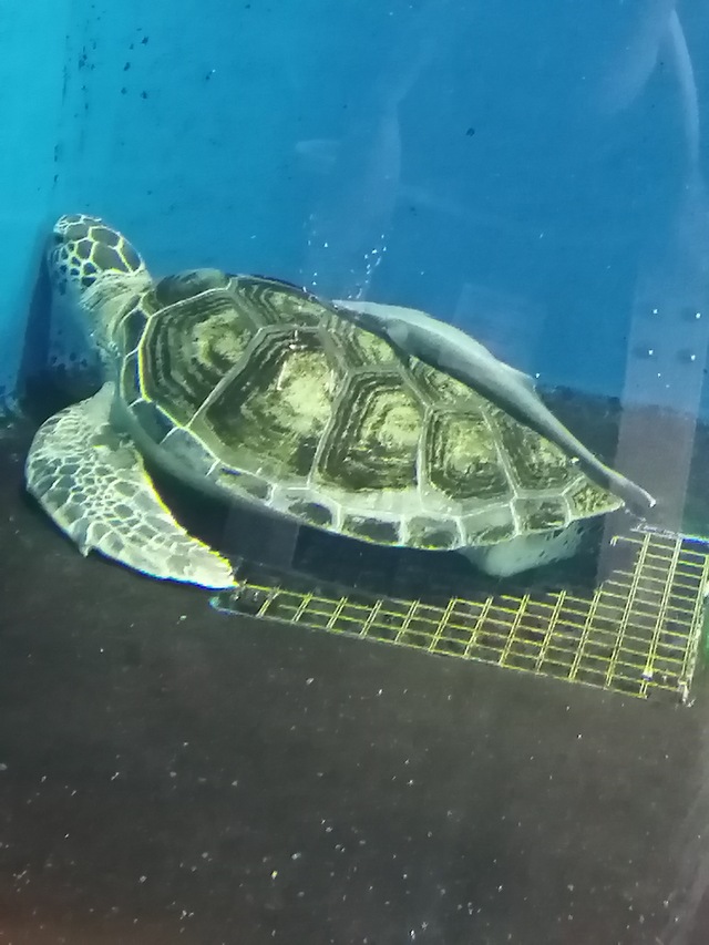 水族館の亀さん上にコバンザメ