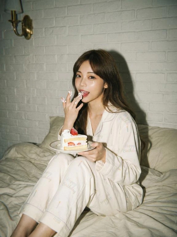 ケーキを食べてるところを