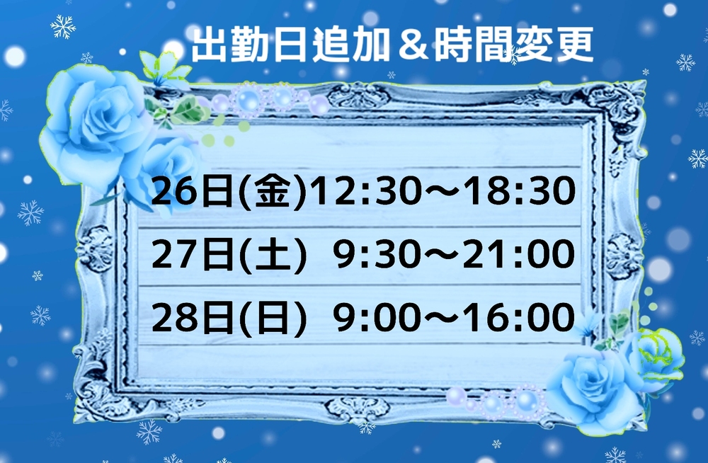 27日も出勤時間延長します☆
