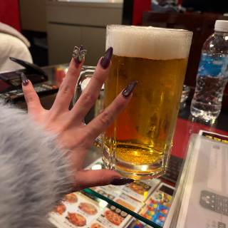 メガジョッキのビール飲みながら