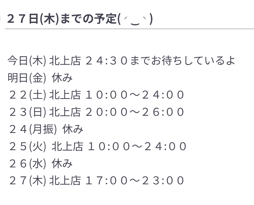 今日は、北上店 24:30までお待ちしているよ🎵