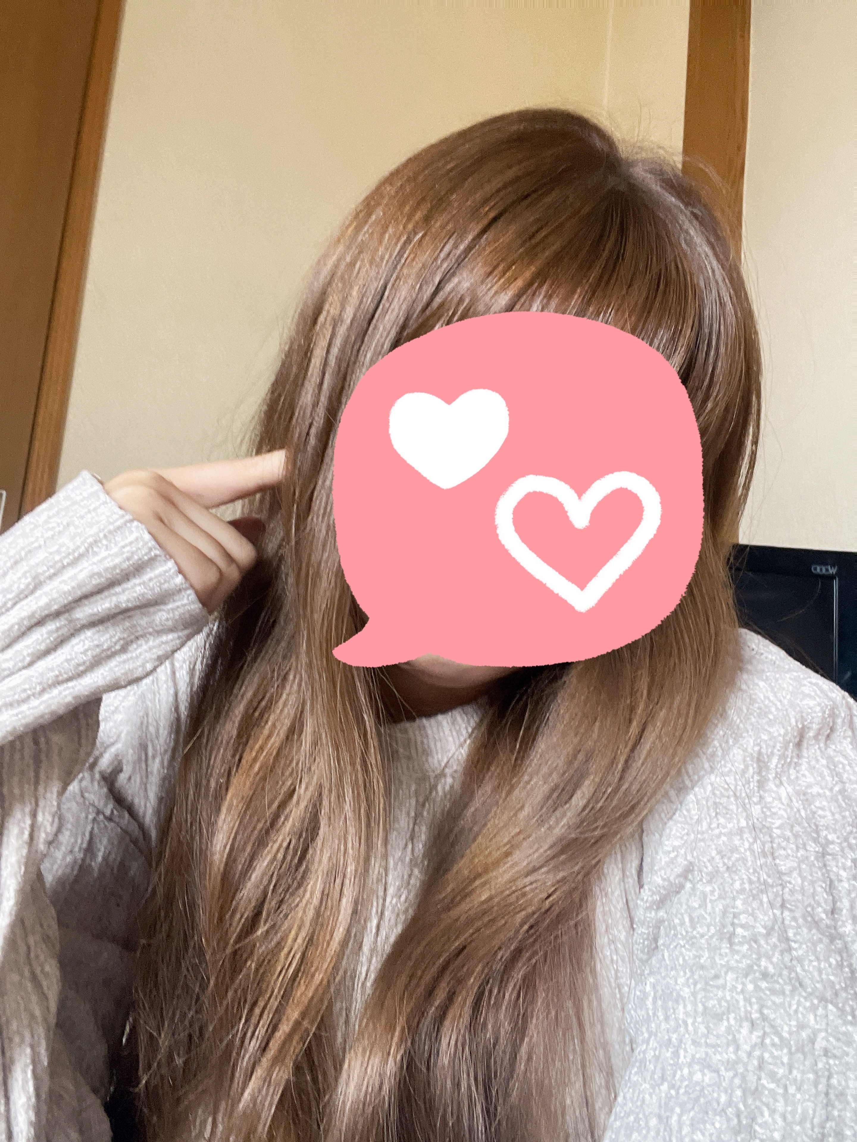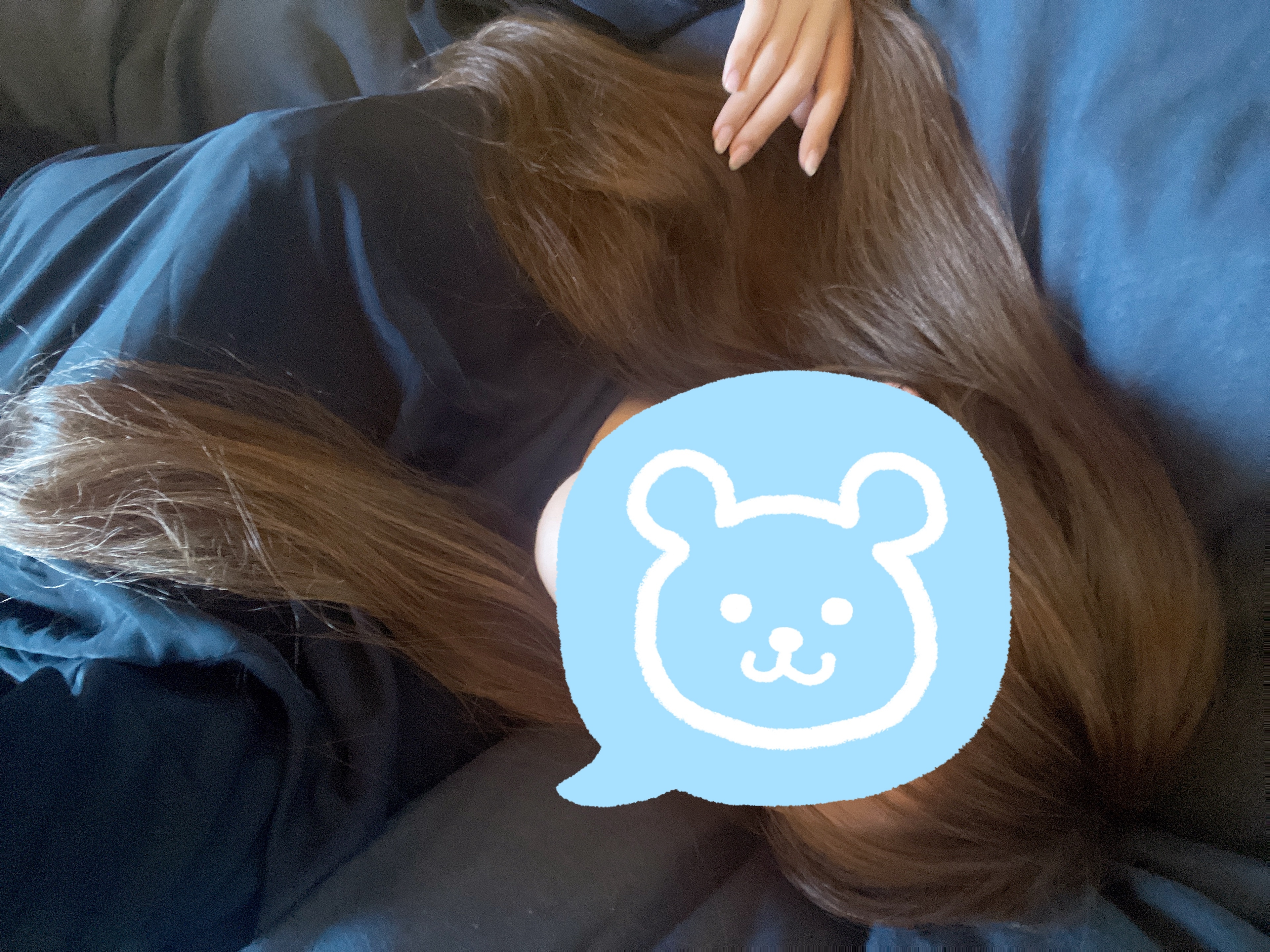 前髪自分で切ったらヘンテコになった💇♀️早く伸びるように引っ張ってる