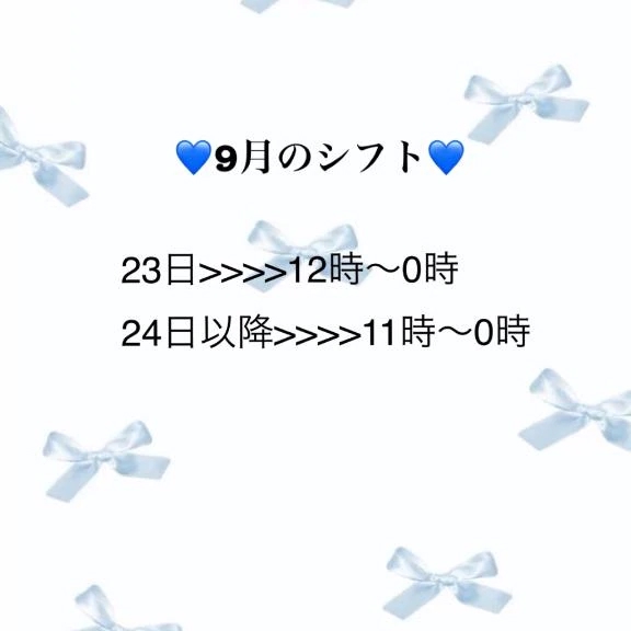9月後半のシフト決まりましたので