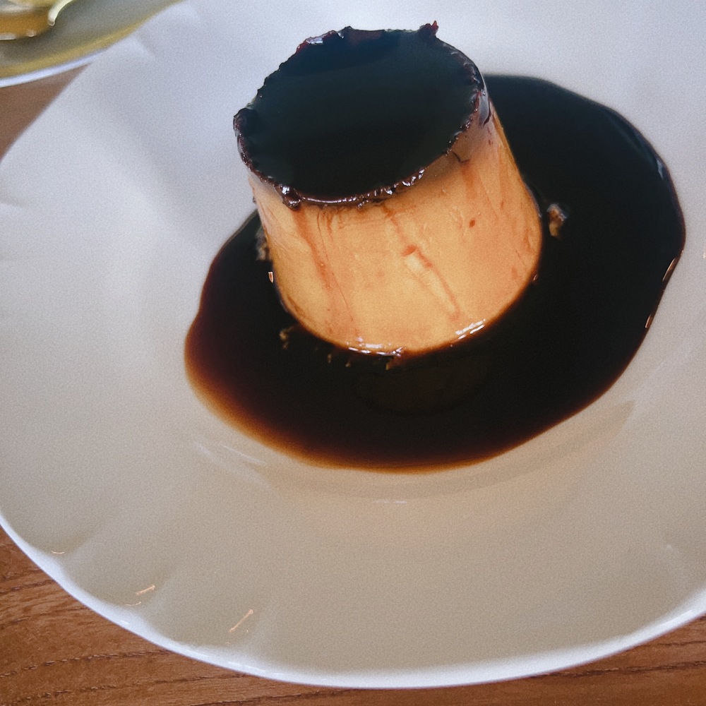 プリンは写真のような硬め、カラメル苦め派です。