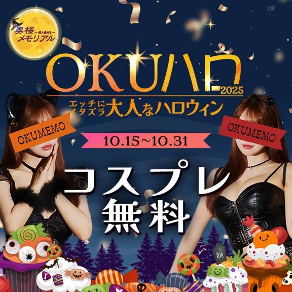 お得なopの案内ですオクメモハロウィンイベント2025開催期間【10/15-10-31】内容 【コスプレ無料】にてご案内させて頂きます。・全コース・割引併用可※ハロウィン限定のコスプレもございます!ご確認ください♡
