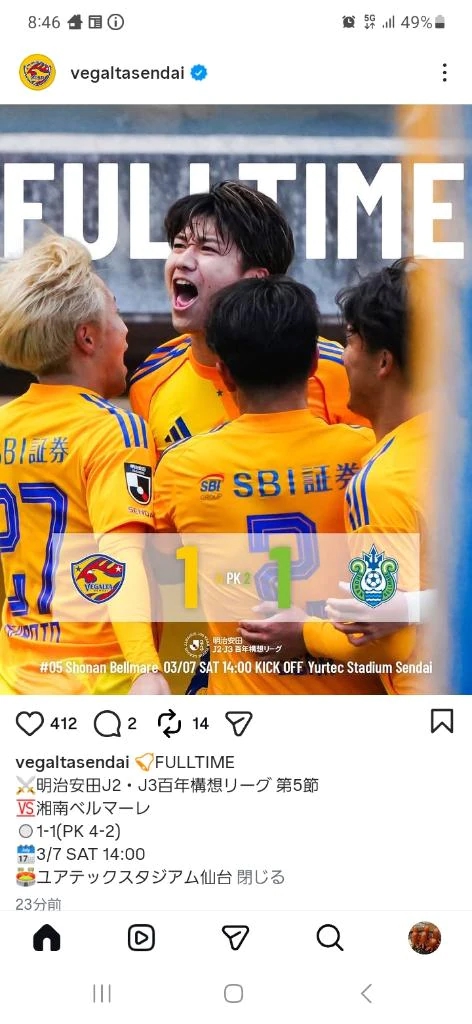 昨日は、ベガルタ観戦