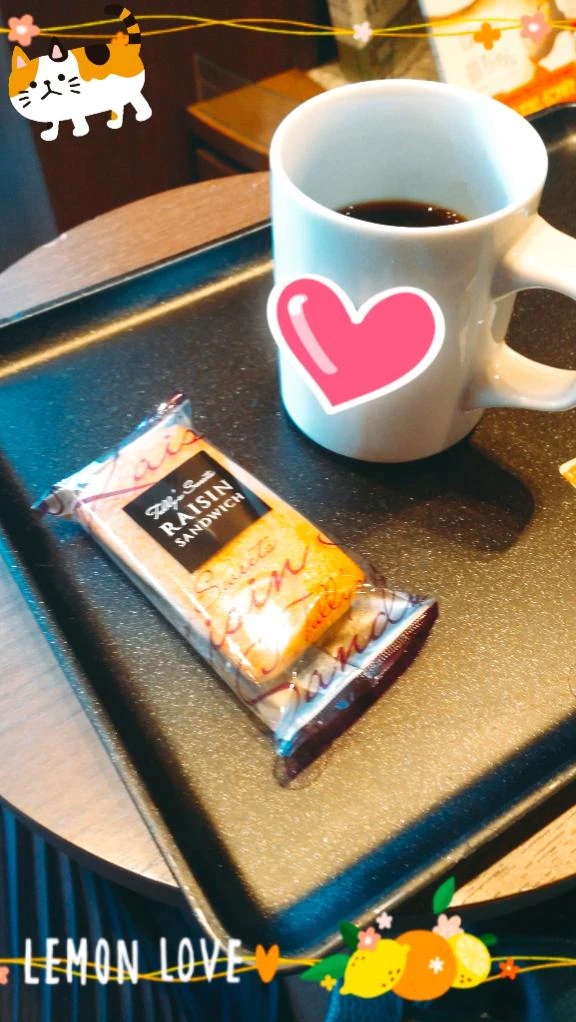 一緒にレーズンバターサンドを頂いてます🍇☕💗