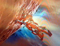 しかしアムロは諦めず、シャアの乗る脱出ポッドをアクシズの表面に押し込み、自身もそこに取りつくと、ガンダム一機でアクシズを押し返そうとする