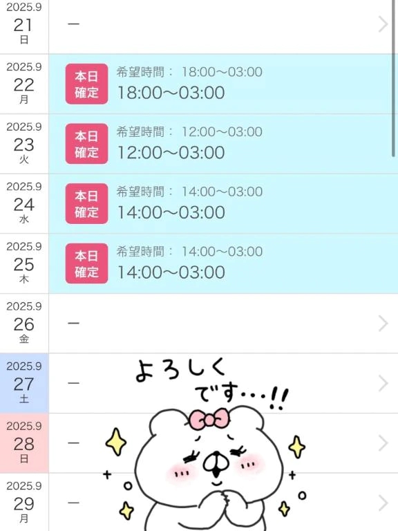 来週のシフトは近日中に