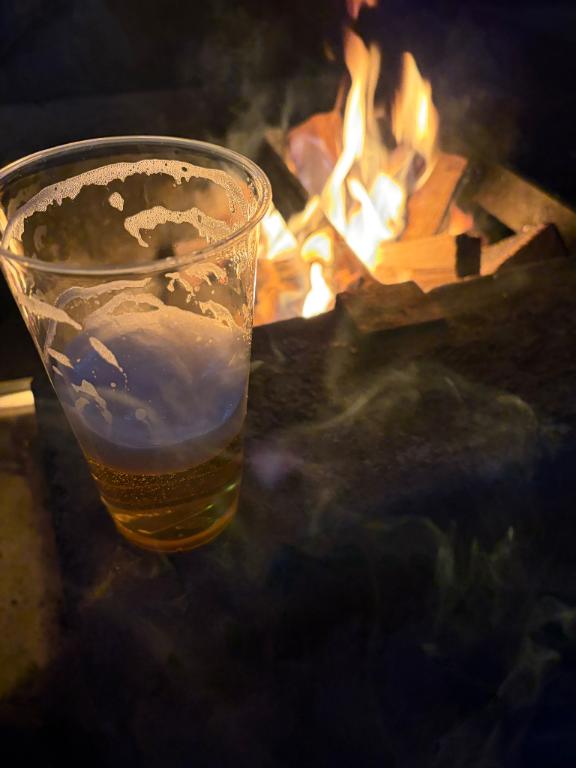 焚き火でビール、、きもちよすぎるっっ