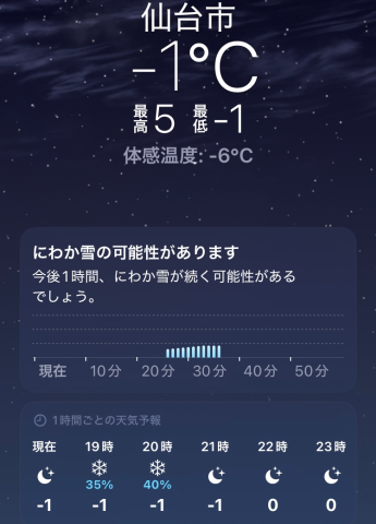 現段階で仙台市内はマイナス気温なので