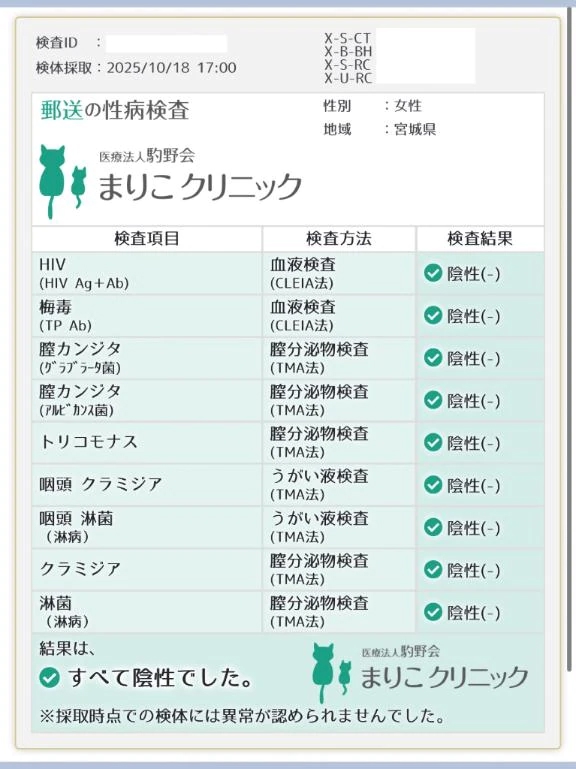 今回もオールクリア(陰性/異常なし)です💉✨