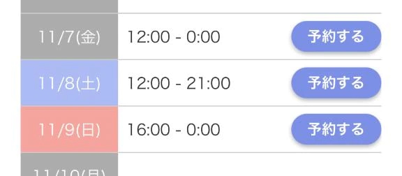 7日金曜日12時から0時