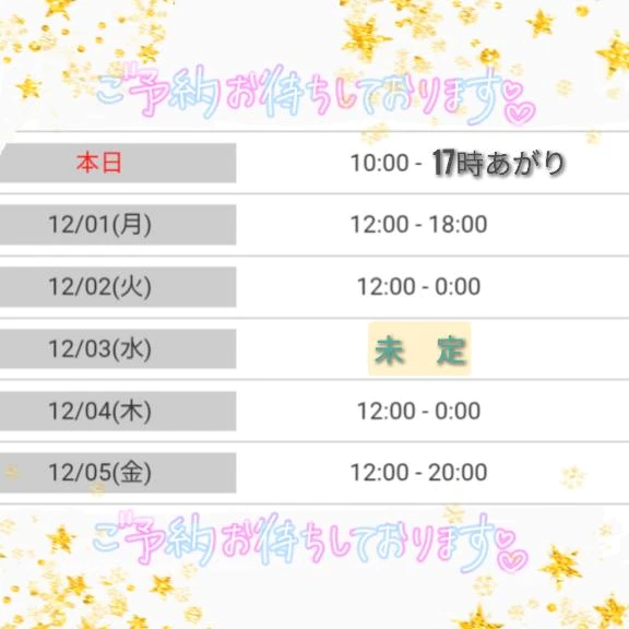 明日12月1日からの出勤予定をupいたしました![]()