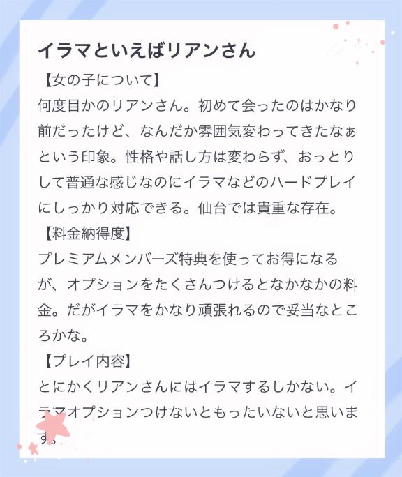 「仙台で、ここまでイ○マできる子いないよ~」とお褒め頂くことが、多くなりました🤭