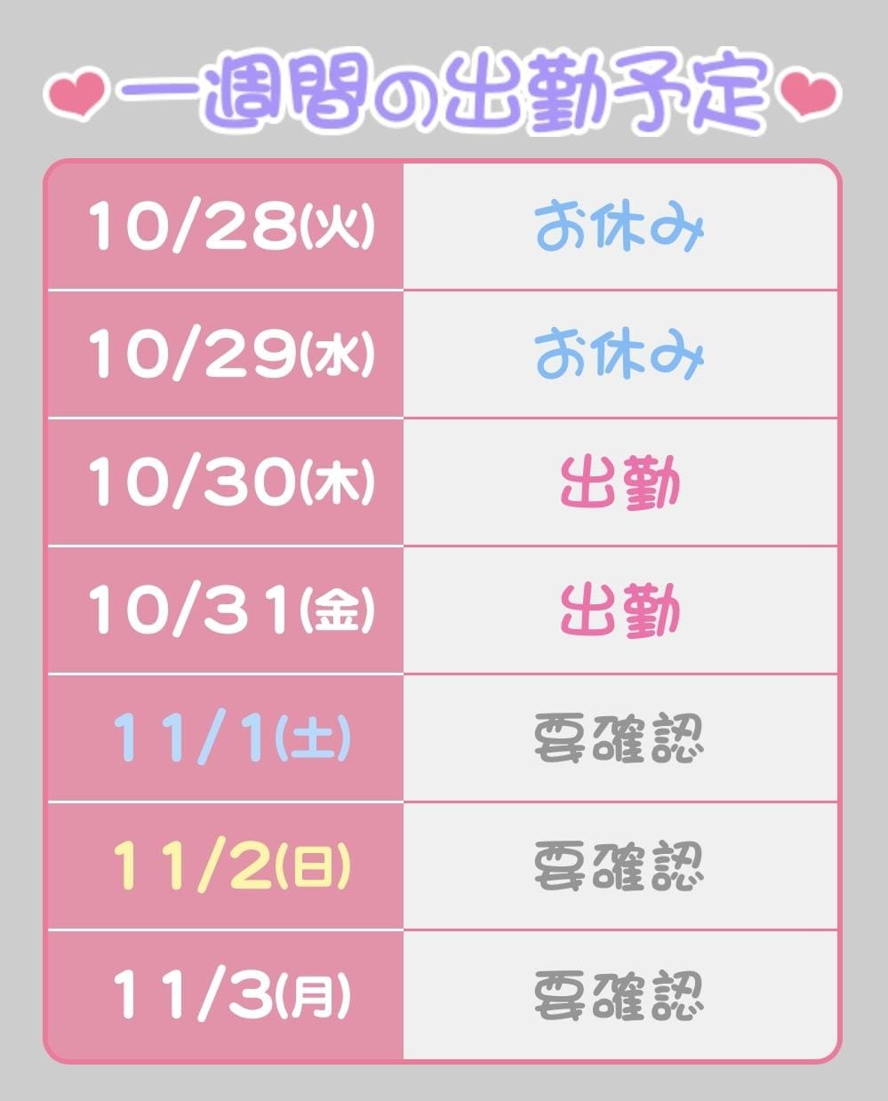 今週の出勤予定