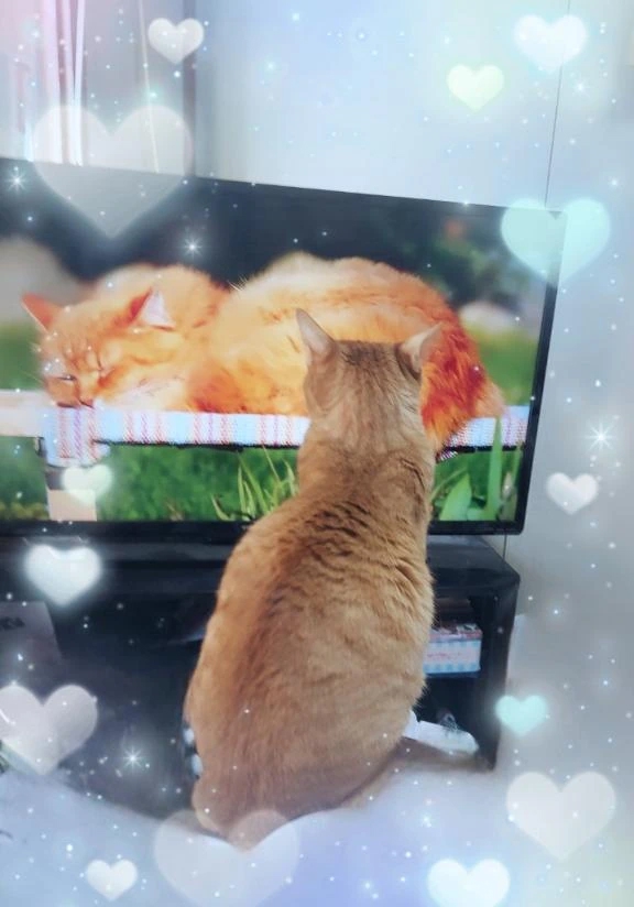 ちょうど、猫ちゃんだけが出てくる YouTubeを見ていたら、うちのプリンくんが テレビに釘付けになって興味津々のようだったのか テレビの目の前で見ていて、 思わず写メを撮っちゃいました お友達が欲しいのかな☺️