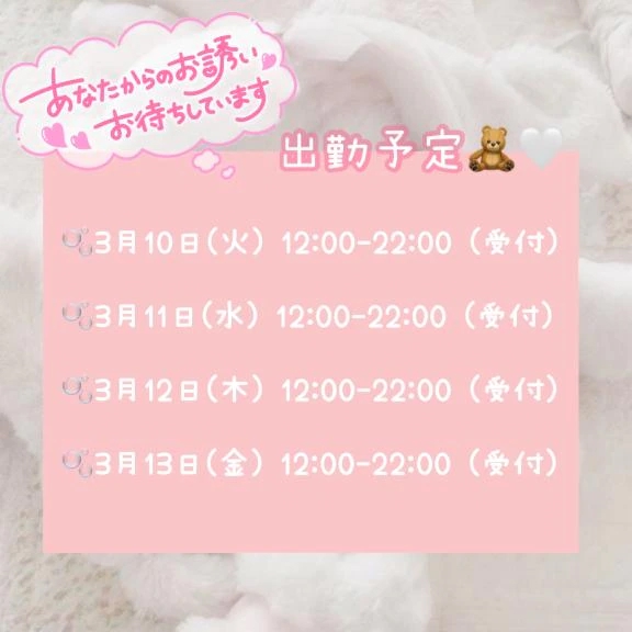 今日は、昨日から事前予約が 2件入ってて嬉しすぎるーっ🥰🫶 ありがとうございますっ💓 いっぱいイチャイチャして 仲良くなりましょう🧸🤍✨️ 気をつけて お越しくださいね🌷 🍒𝐍𝐞𝐲...