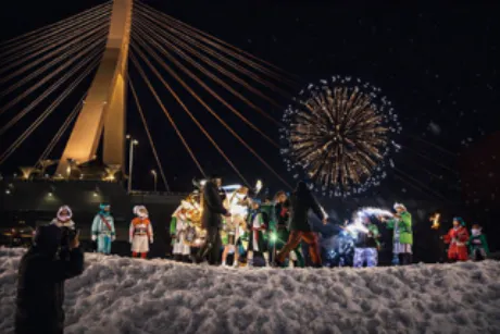 雪景色の中に打ち上がる冬花火は、まさに特別なご褒美時間