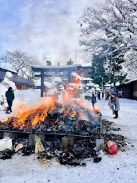 青森市内の各神社では、正月飾りやお守りを焚き上げる