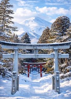雪化粧をまとった岩木山を見上げると、
