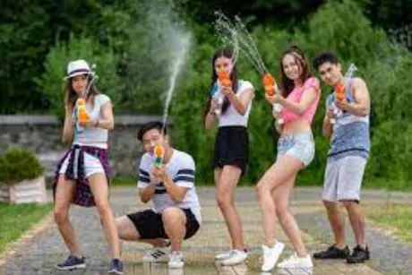 お客様の所に水鉄砲持って行って