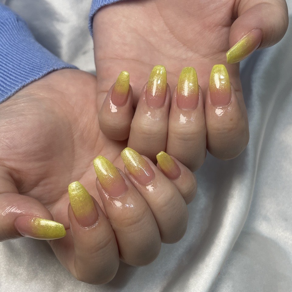 今バターイエローなど流行ってますが、わたしは「レモンイエロー」にしました🍋指先がキラキラしてると、お仕事中もふとした瞬間にテンションが上がっちゃいます!やっぱりモチベに繋がるなと改めて感じますね(`・ω・´)