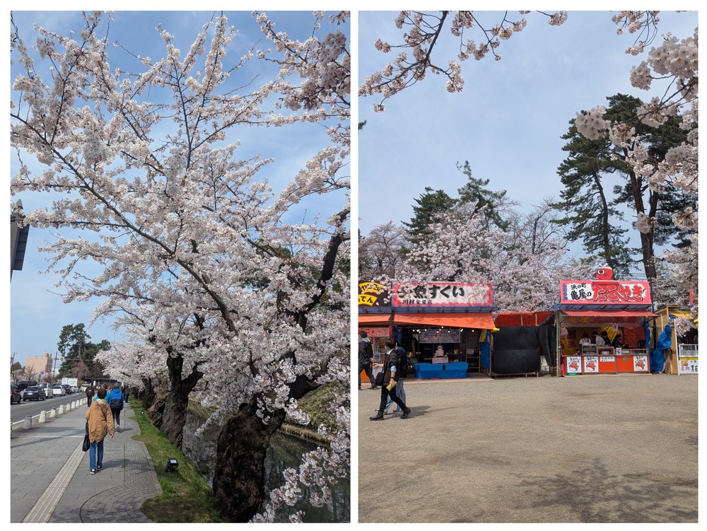 今日の朝イチに弘前さくら祭りへ行ってきました🫰💕川沿いの桜は満開でしたが、園内の桜の方は所々はまだ開花していない桜の木があって明後日くらいになれば開花すると思います🌸💖