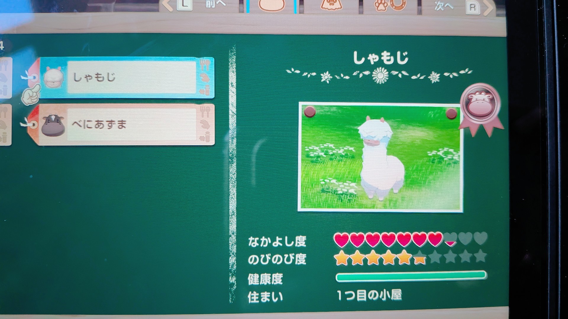 写真は今ゲームで育ててるアルパカのしゃもじ!