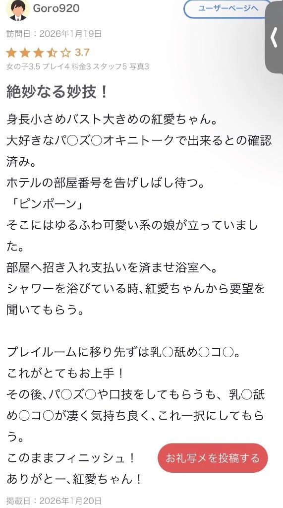 お兄様には乳首舐め手コキが気に入っていただけたようでプレイ開始直後から何回もイッちゃいそうになってて可愛らしかったです☺️