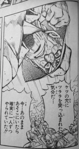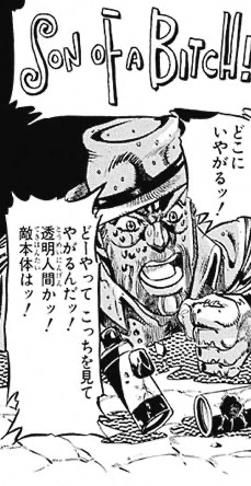 敵の本体であるスタンド使いは、それまで見えていたマッチョな腕以外が細く、あまりのバランスの悪さに承太郎一行は爆笑
