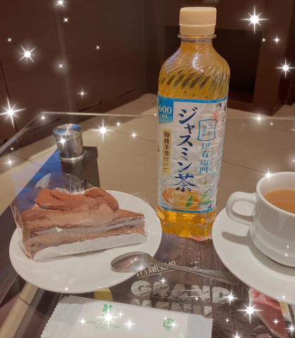 ジャスミン茶とチョコレートケーキを