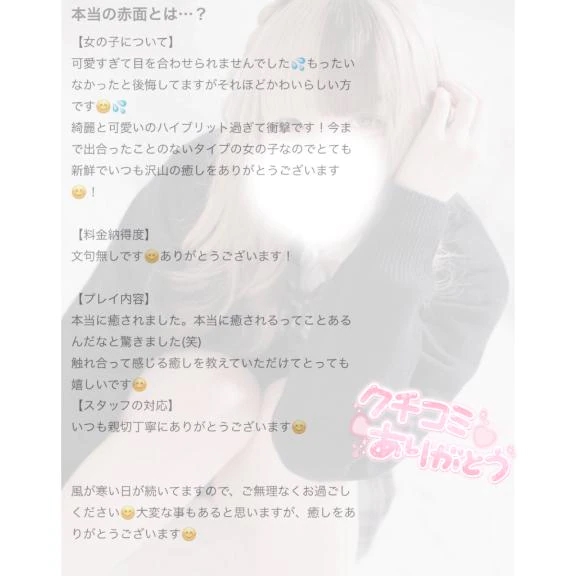 事前予約が少なくちょっと不安でしたが、出勤後に予約がどんどん埋まっていき、お会いした皆様とたくさんいちゃいちゃできてとても楽しい1日になりました❤︎