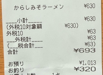 合計金額693円なのに支払いは1013円。