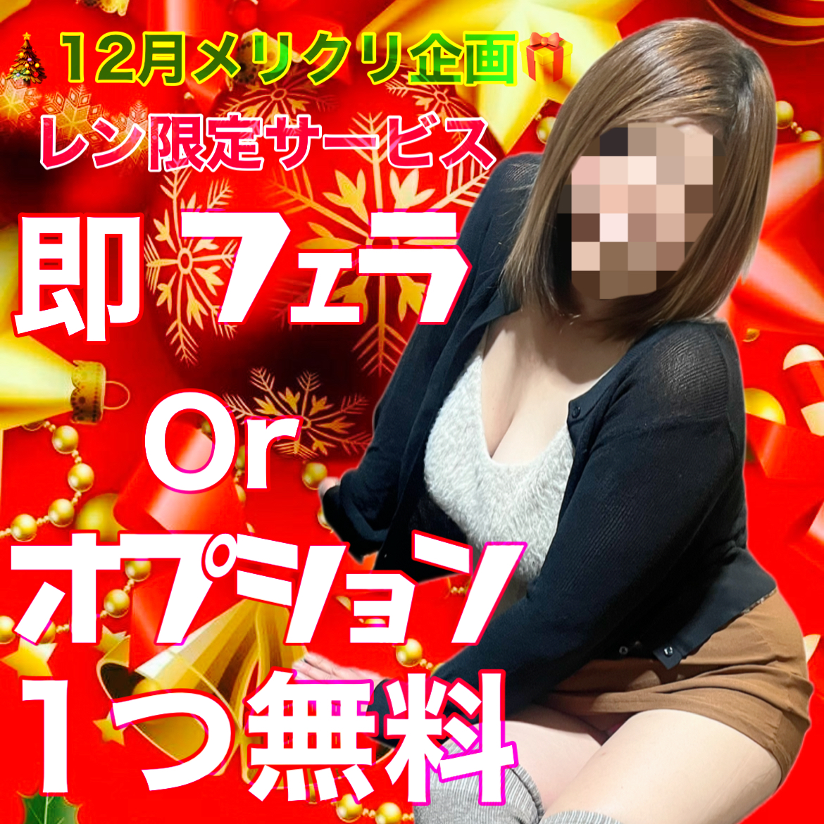 12月1日から✨🎁✨ 🎅レン限定クリスマスプレゼント🎄 ブログみたよと受付で オペレーターに伝えてもらえたら ❤️即フェラor❤️オプション1つ無料🩷サービスします! ※即フェ...