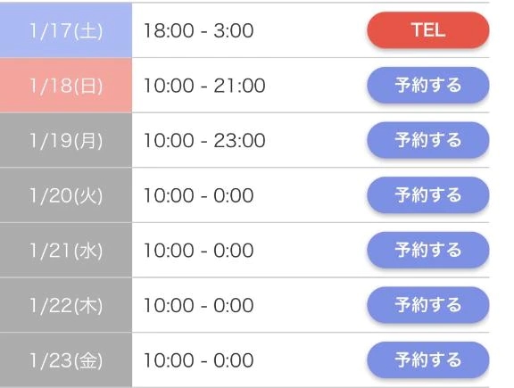 こんばんは🌙 来週の出勤予定です❕ 25からは帰省のため少しの間いないので 来週がチャンスだよ☑️ お誘い待ってます🙂↕️ よろしくお願いします😸